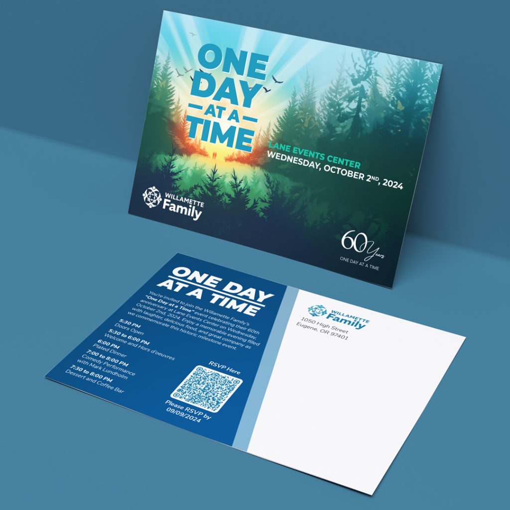 We continue to support Willamette Family with branded materials across all of their marketing and communications efforts, helping them connect with their audiences in a clear, approachable manner. Recent projects included designing their 60th Anniversary event marketing materials, their 2023 annual report, and new building signage.